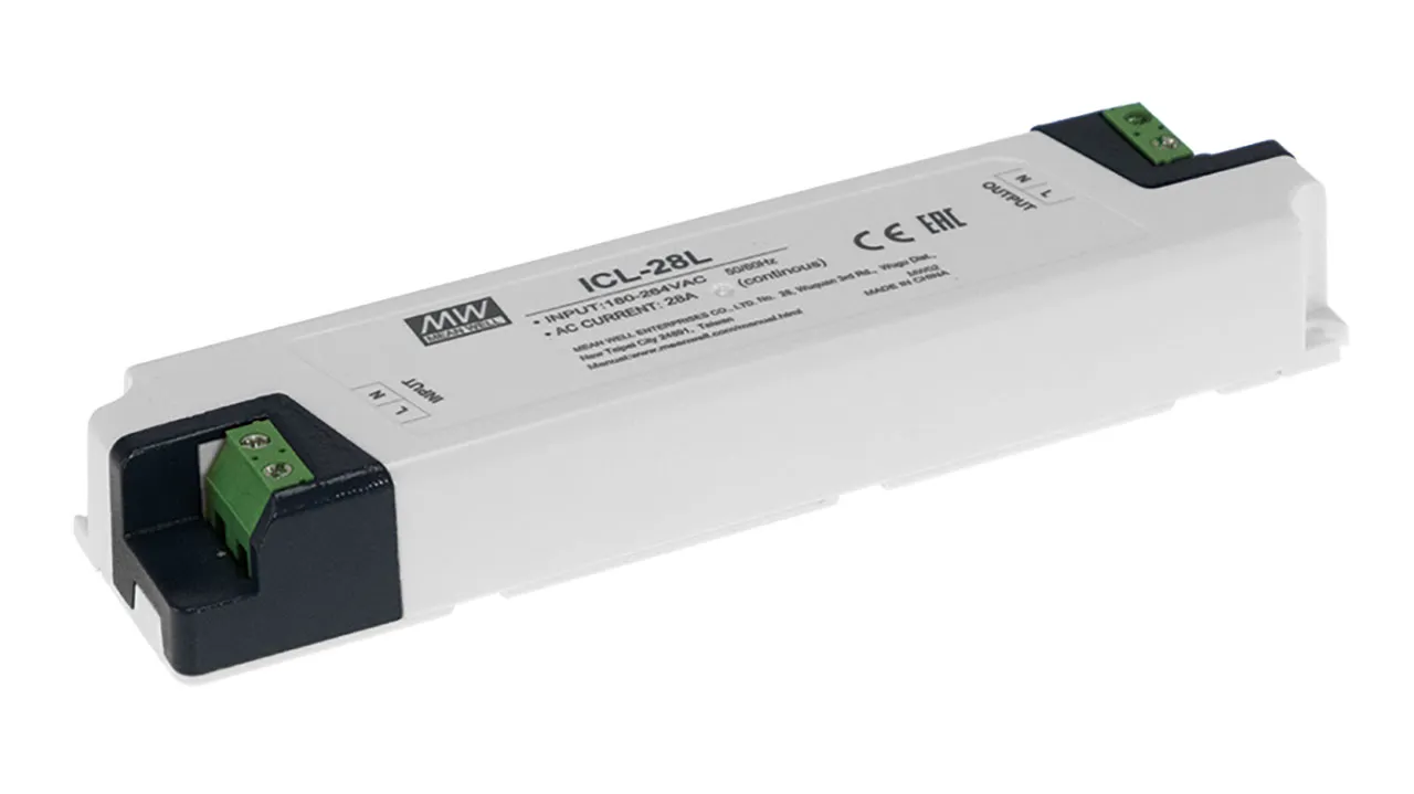 The ICL-28 is a 28 amp inrush current limiter that can be used to reduce the high starting current due to capacitive load causing the circuit breaker to be falsely triggered. Several power supplies can be installed on the same AC line after the implementation of an ICL-28.