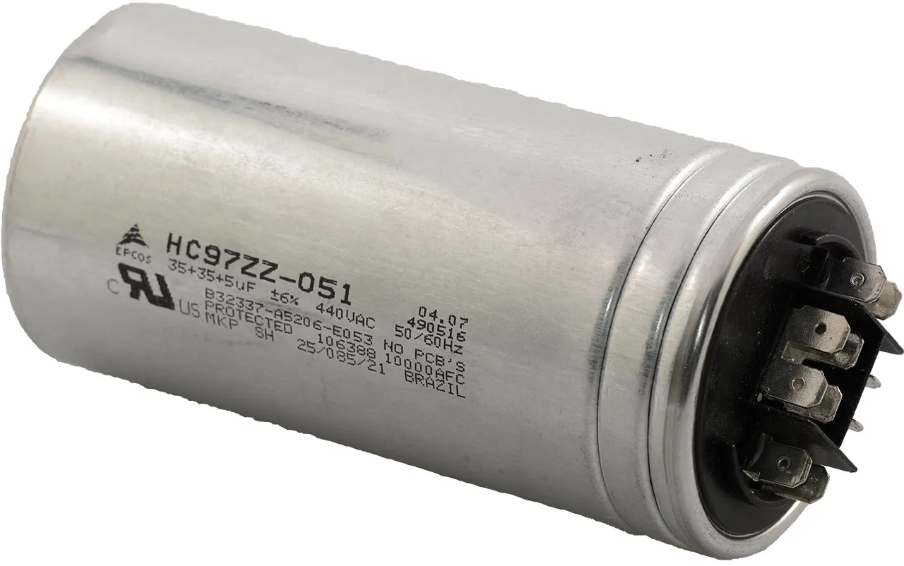 AC Motor Run Capacitor 35+35+5uF 6% 440VAC Radial Cylinder Quick Connect Terminals