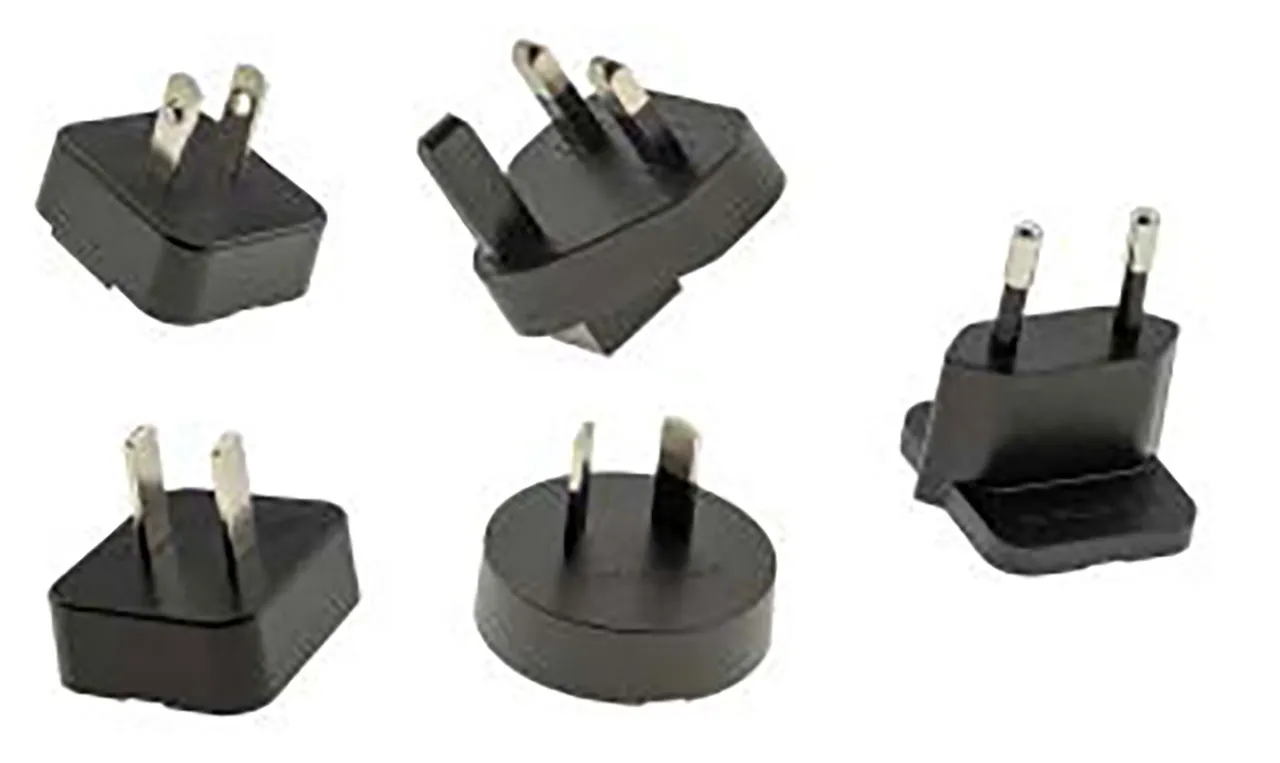 Set of AC Plug Clips for MEAN WELL NGE12 to NGE100 Series of Interchangeable Wall Adapters Including: Australian, United Kingdom, European, China, and United States.