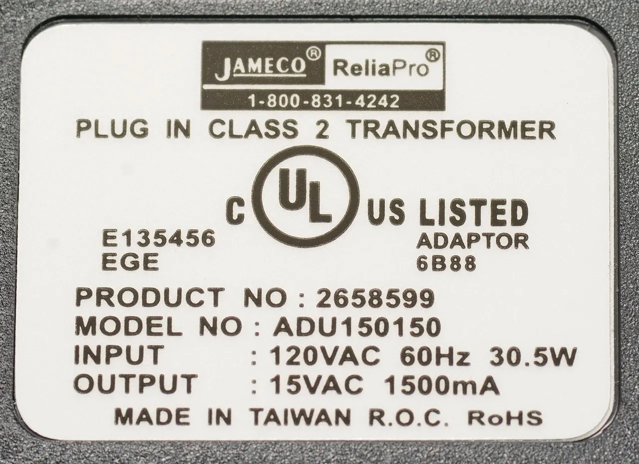 - Output voltage: 15 VAC