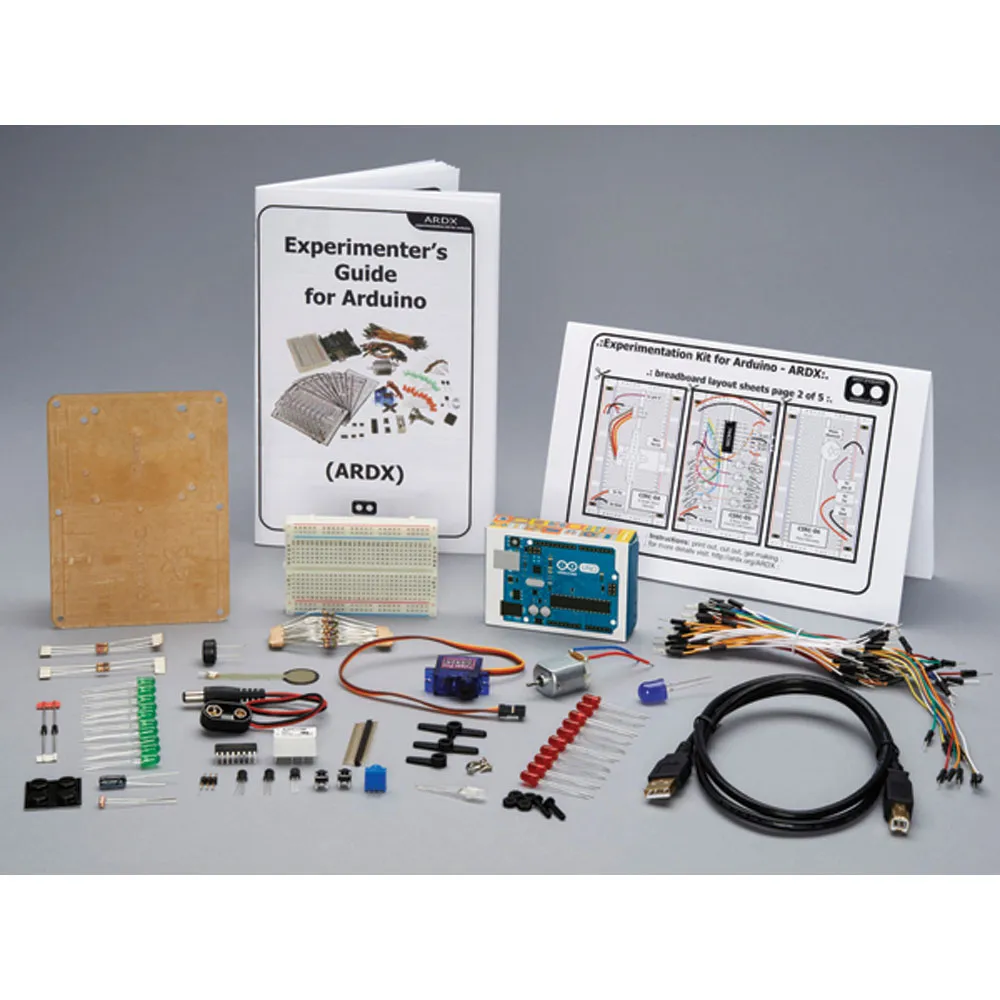 Interested in making neat stuff with an Arduino but not sure where to start? This kit includes all the pieces needed to complete 11 different circuits, along with a experimenter's guide booklet & breadboard layout sheets. Basically everything you need to be playing within minutes of its arrival. No soldering required!It includes the thru-hole (THM) type Arduino Uno R3. The Uno is pin and code-compatible with the Duemilanove, Diecimilla and older Arduinos so all your shields, libraries, code will still work. The new R3 (3rd revision) of the UNO has a few minor updates, with an upgrade to the USB interface chip and addi