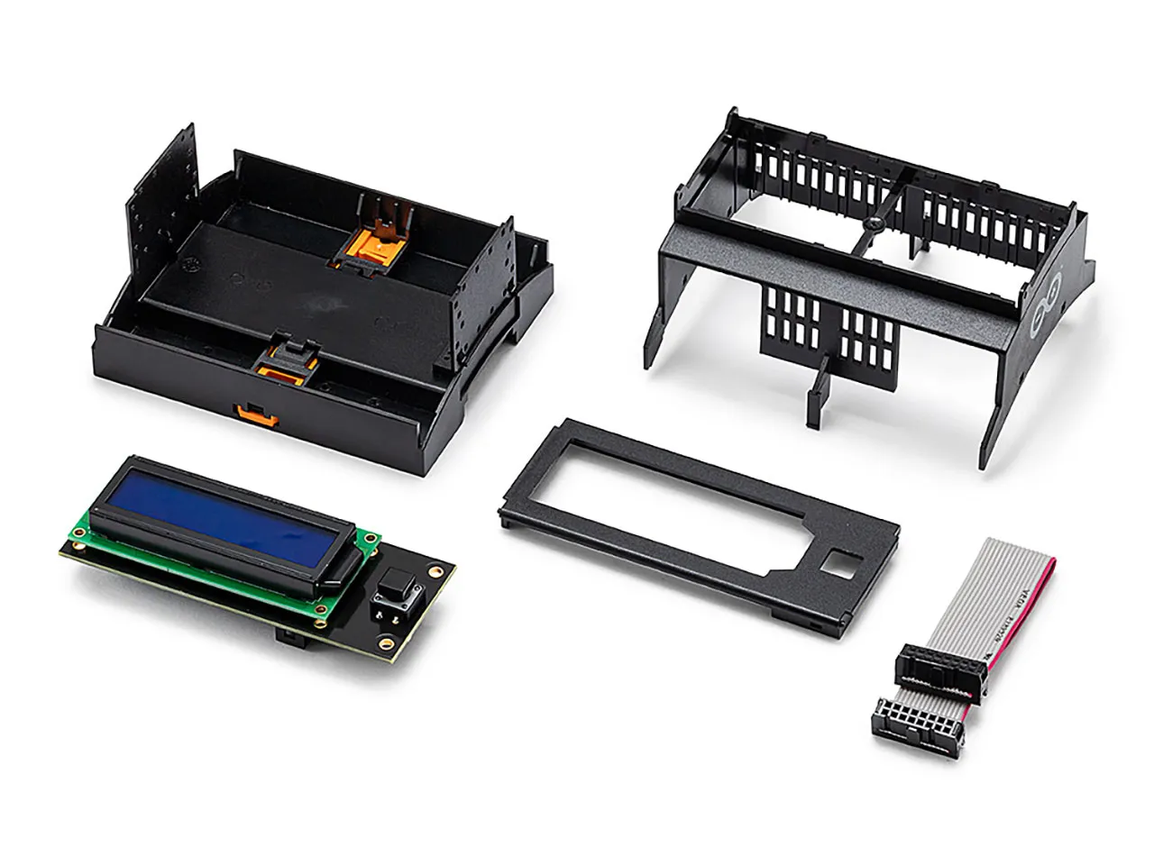 - LCD display (NDS1602A): 2 lines (16 characters) with white backlight