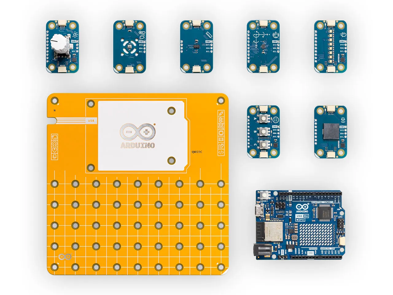 Modulino® are sensors and actuators that simply connect via the UNO R4 WiFi's onboard Qwiic connector. You can connect more than one for more complex projects and never have to wonder which side goes where, because the connector is polarized. The Plug and Make Kit includes one of each:- Modulino® Knob: for super-fine value adjustments