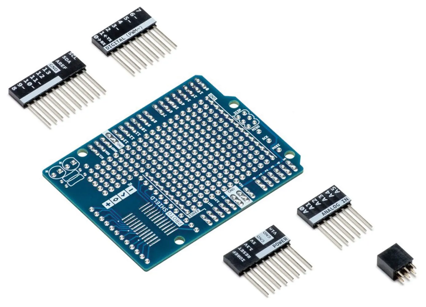 The ProtoShield makes it easy for you to design custom circuits. You can easily solder TH or SMD ICs on the prototyping area to test them with your Arduino board. The SMD area is designed for a maximum of 24 pins SOIC integrated circuit and the TH area contains a lot of space for the needed components around your project. You can even stick a mini breadboard (not included) on the protoarea for solderless operation. The proto area includes also two power lines (IOREF and GND), two LEDs pads and SPI signals breakout pads for boards with SPI only on the ICSP header like Zero.Features