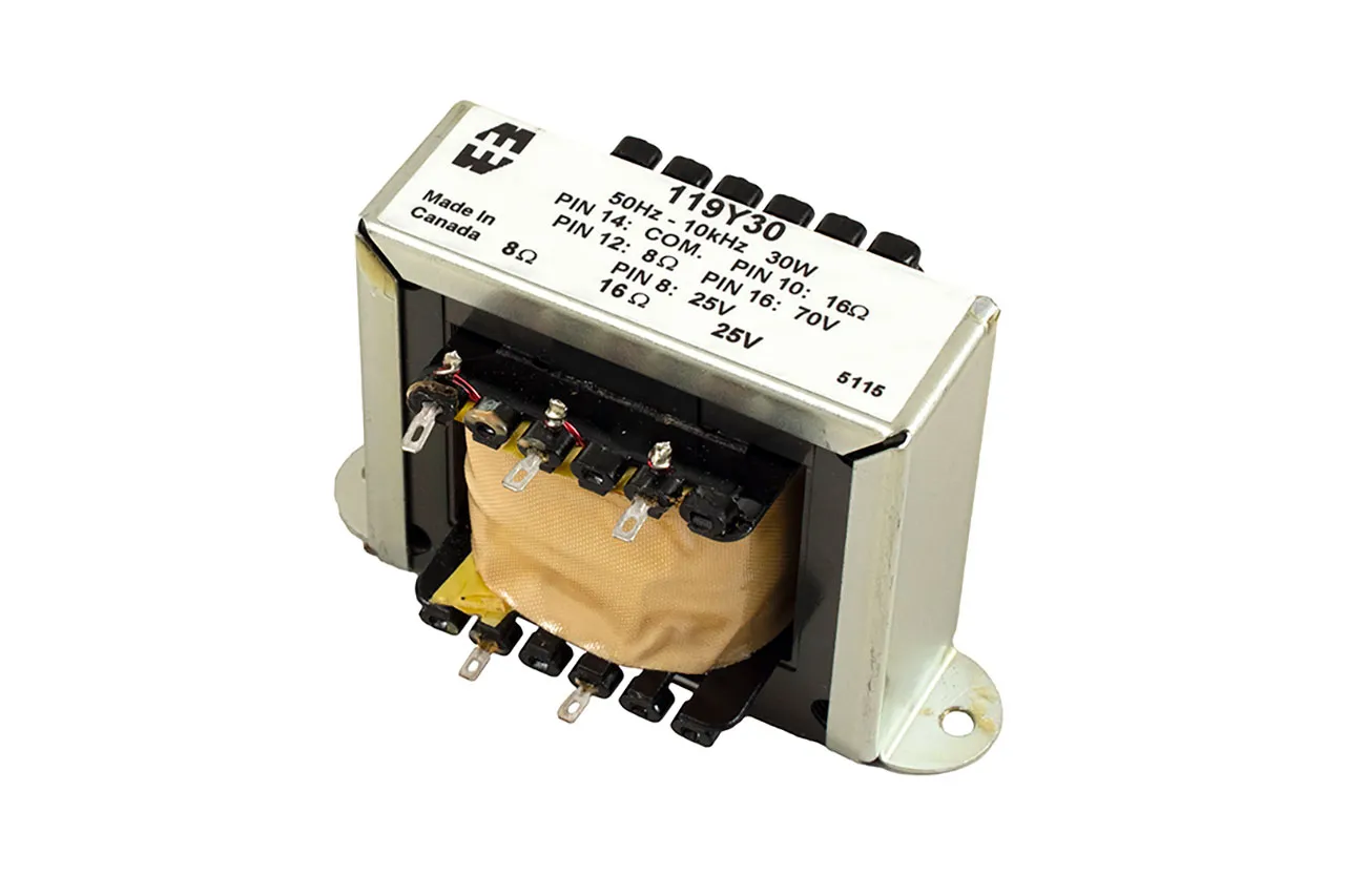 Audio transformer, line matching, 60 watts, line output 75 & 25V, 119 series.