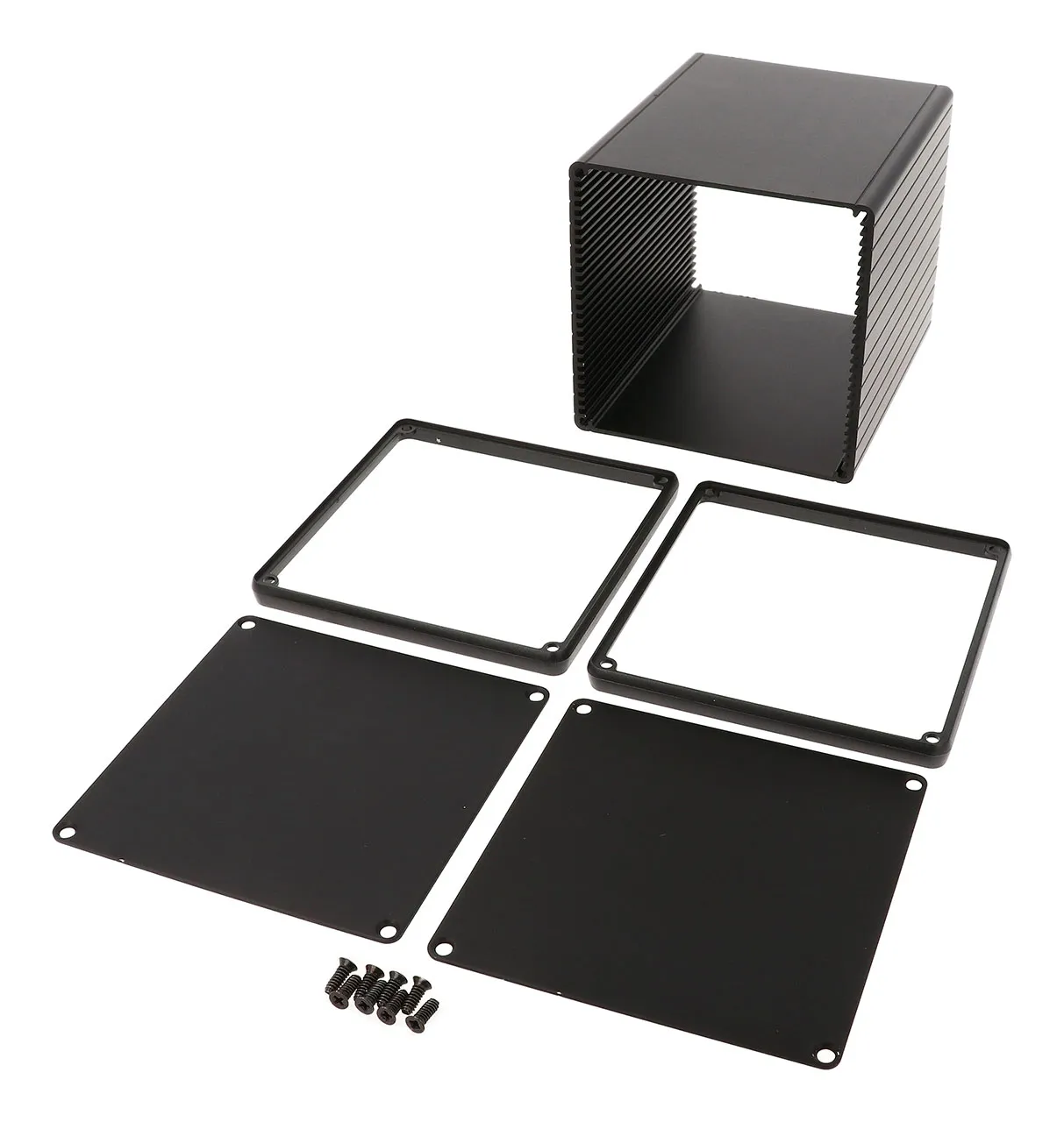 Black Extruded Aluminum Enclosure with Metal End Panels 120x103x103mm