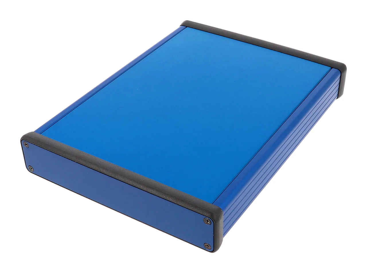 Blue Extruded Aluminum Enclosure with Metal End Panels 220x165x31mm