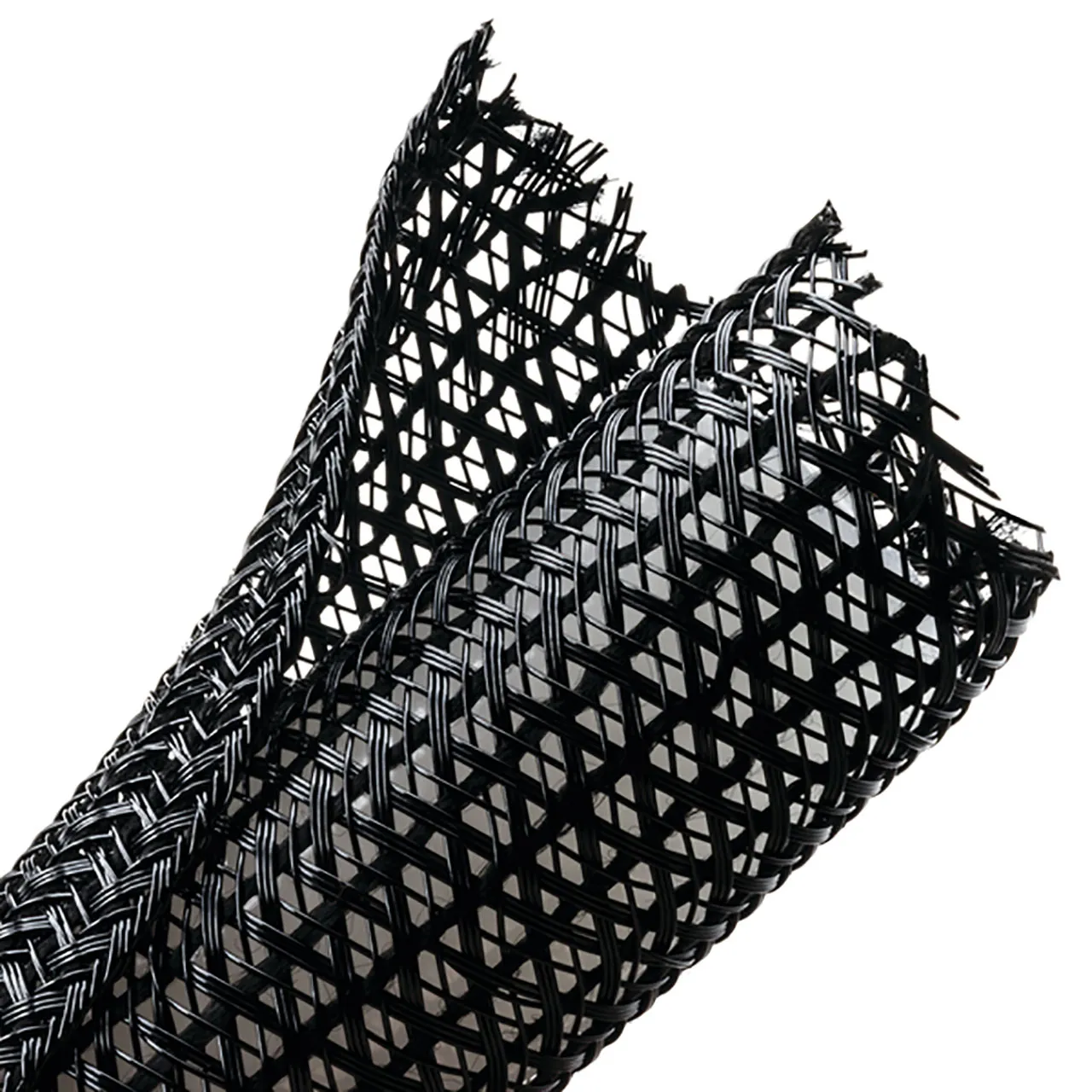Braided Sleeving, Split Wrap, 1.5" Dia, PET, Black, 75 ft/bulk reel