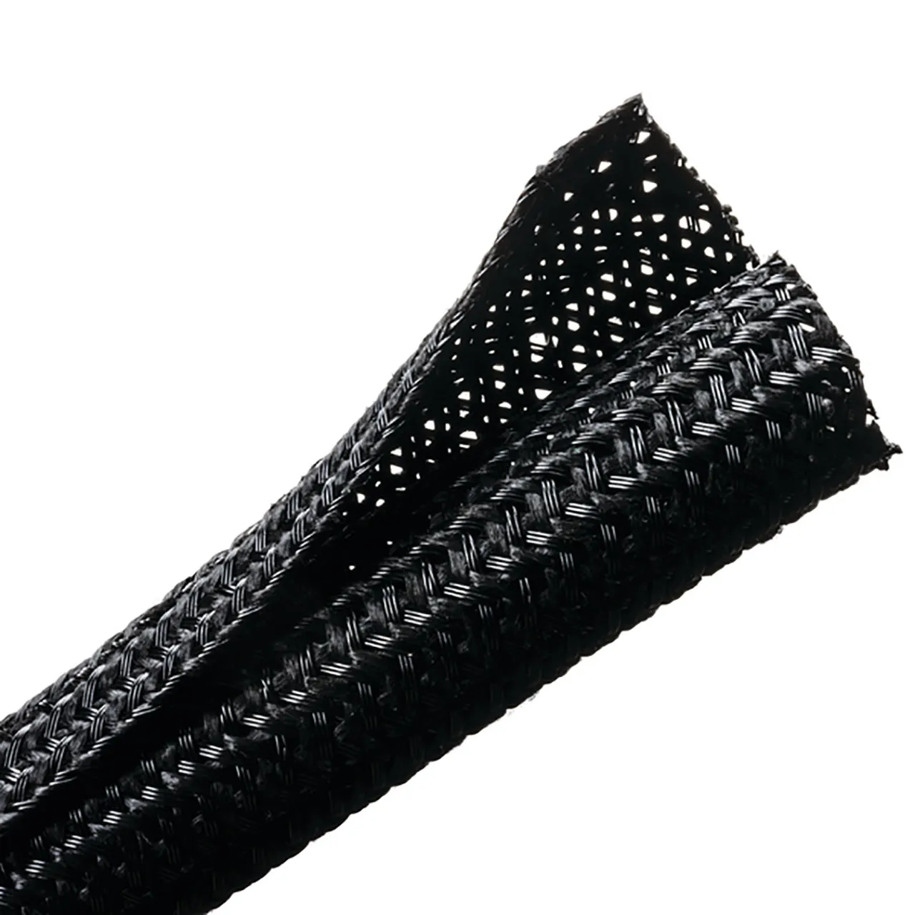 Braided Sleeving, Split Wrap, Flame Retardant, 0.5" Dia, PET, Black, 150 ft/bulk reel