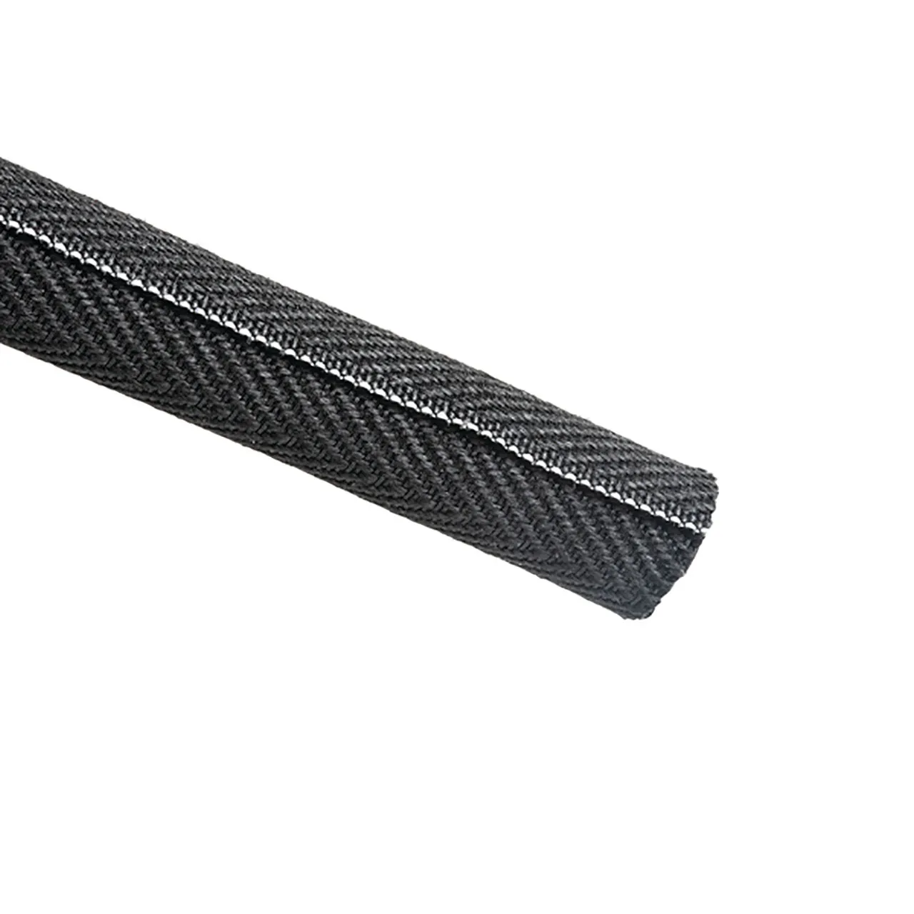 Braided Sleeving, Split Wrap Woven, Flame Retardant, 1-1/4" Dia, PET, Black, 75 ft/bulk reel