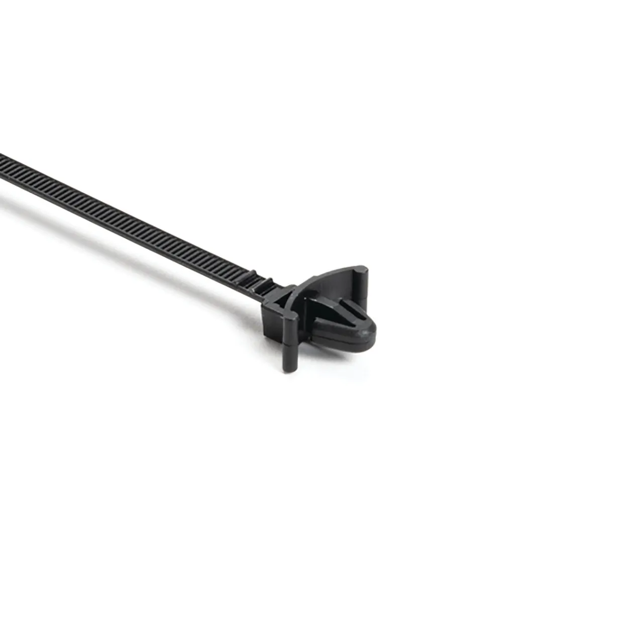 Cable Tie 1-Piece with Arrowhead Mount with Wings, 6.5"L, 50lb, 0.25 - 0.3" Hole Dia, PA66, Black, 500/bg