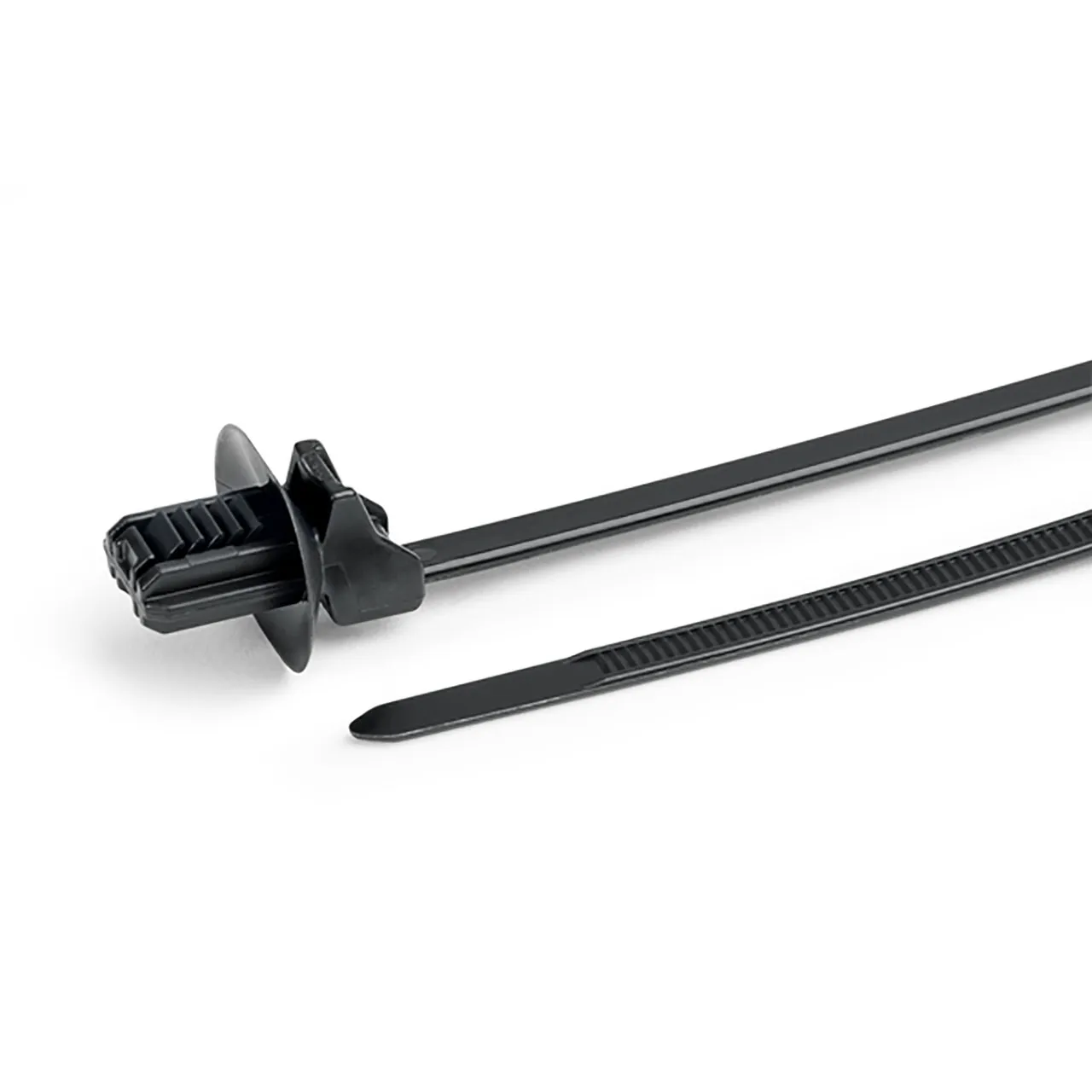 Cable Tie 1-Piece with Oval Fir Tree Mount with Disc, 6.5"L, 6.2 x 12.2 mm Mounting Hole, PA66HS, Black, 1500 per Package