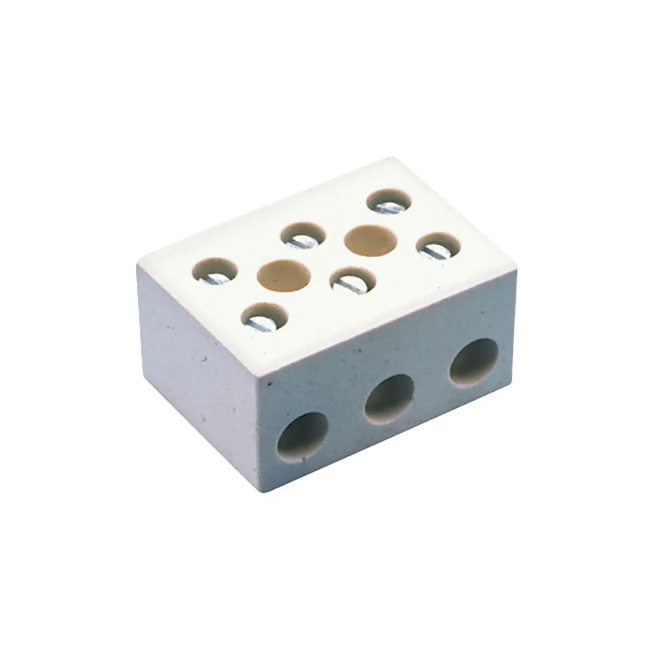 Ceramic Terminal Block Panel Mount 3 Pole 1100°F Mounting Holes 65A 300V 18-6AWG