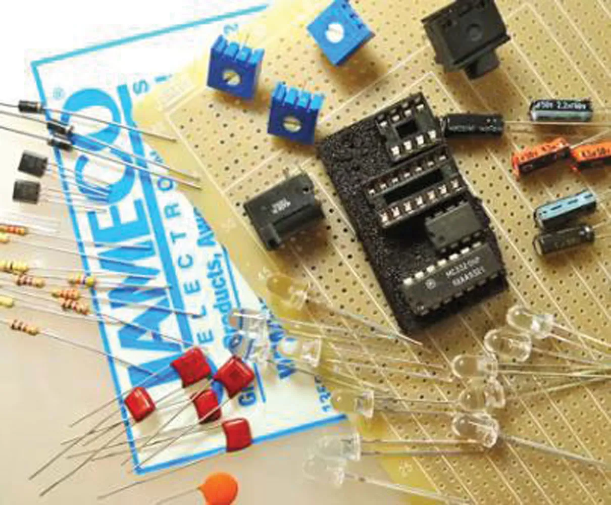 This kit is called "customizable" because you layout the components on the blank PCB according to your preference. An easier drop-and-solder version is now available! See our Easy Color Organ Kit here.