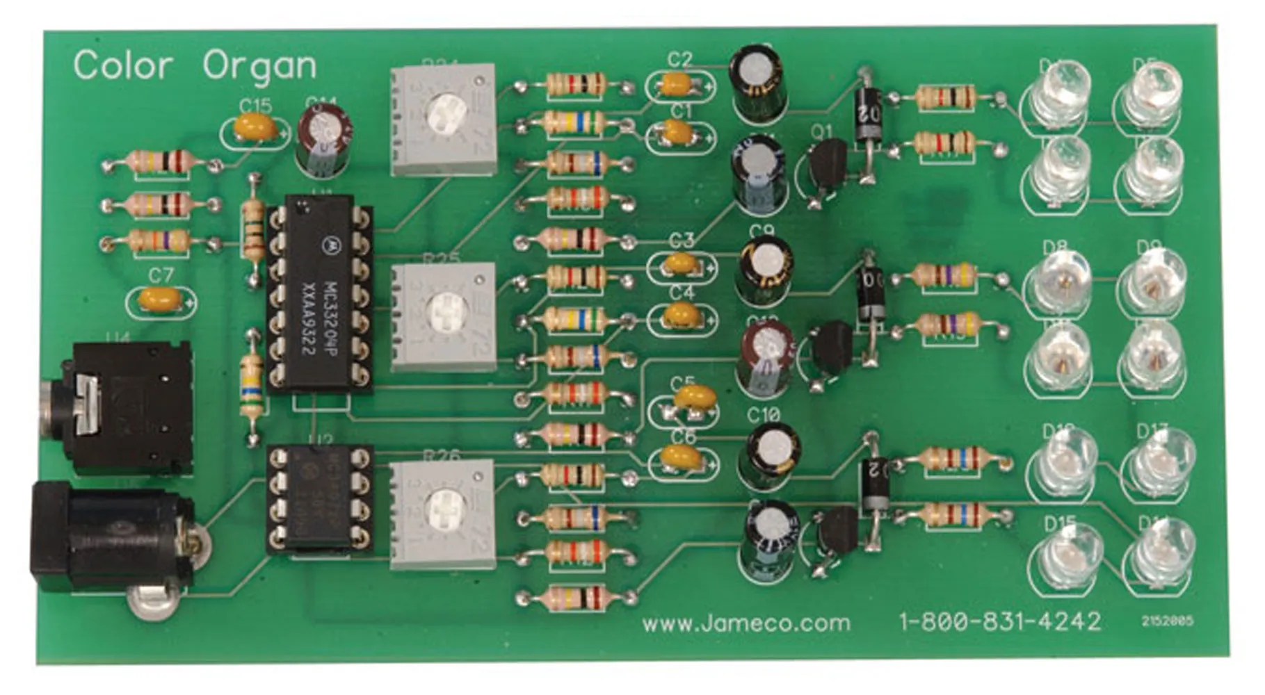 Building on the success of one of the most popular kits at Jameco, we've added an easy to solder (beginner) version that just about anyone can assemble. The original LED Color Organ came with a blank prototyping board and all the components, but the component placement and layout was up to your creativity to design.We've made an easier version that tells you exactly where to place each component. All you have to do is solder. This version of the kit comes with all the same components except for the new PCB which has labeled positions for the components. Just follow the step-by-step instructions, and you'll be flashing to the beat in no time. The instructions are included with the kit but can also be found near the top of this page.