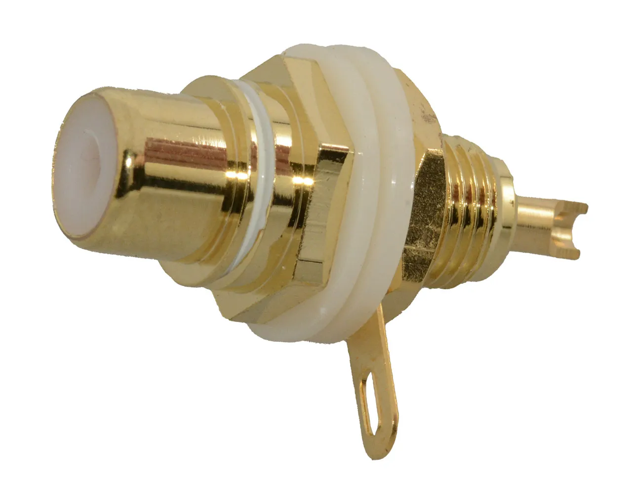 CONN,AUDIO,RCA,JACK,WHITE,TEFLON INSUL,5/16" PNL MNT,GOLD PL