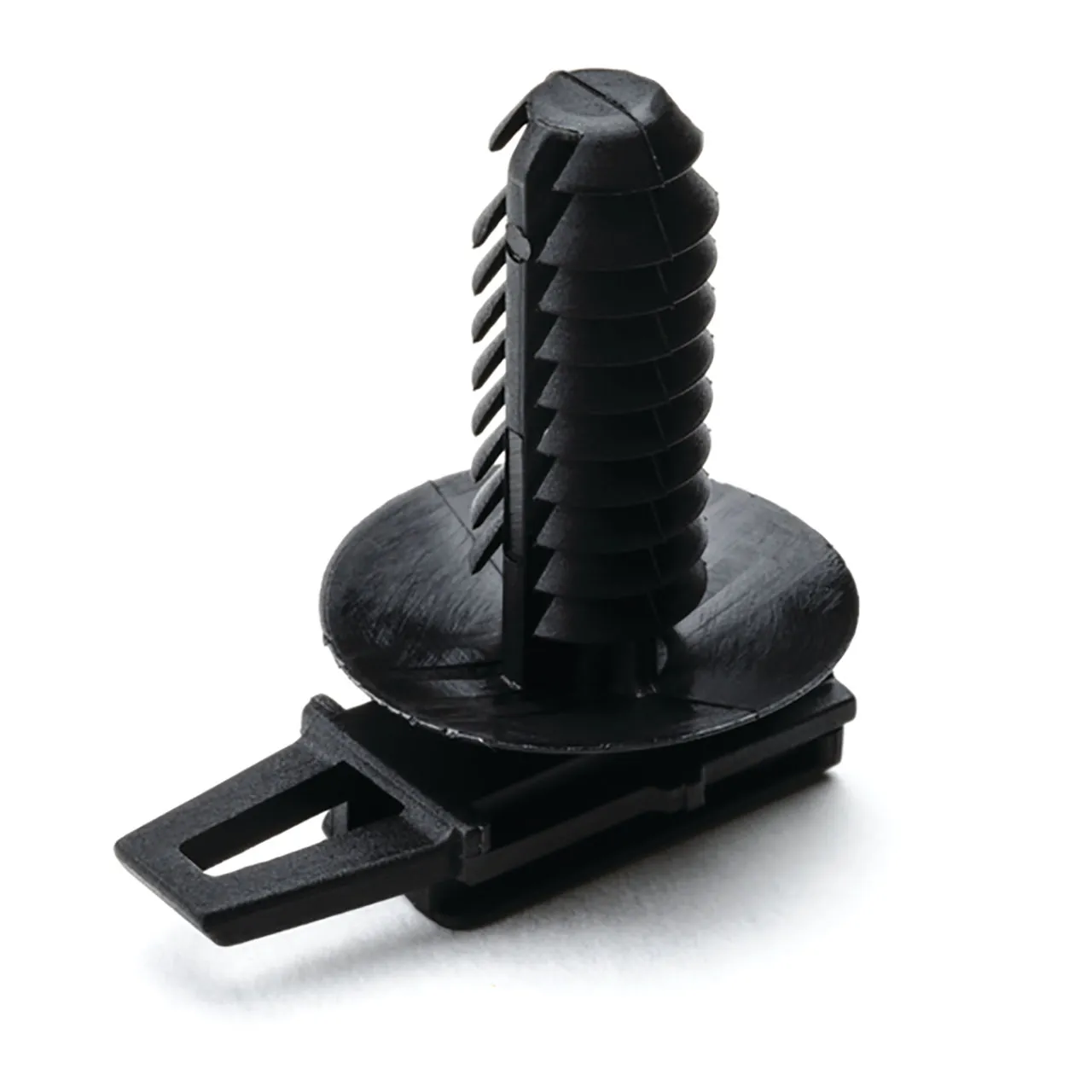 Connector Clip with Round Fir Tree, 0.7-11.0 mm Panel Thick., 6.0 - 6.7 mm Hole Dia, PA66HIRHS, Black, 5000/box