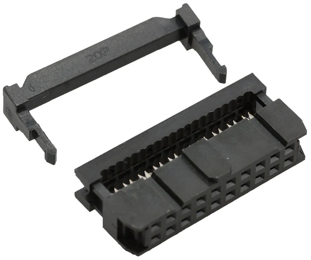 (straight double row or right angle double row, or shrouded box headers) - Industry standard IDC socket (plastic)
