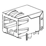 Connector Modular Jack Female 4 Position 2.54 mm Solder Right Angle Thru-Hole 4 Terminal 1 Port Cat 3/Cat 4