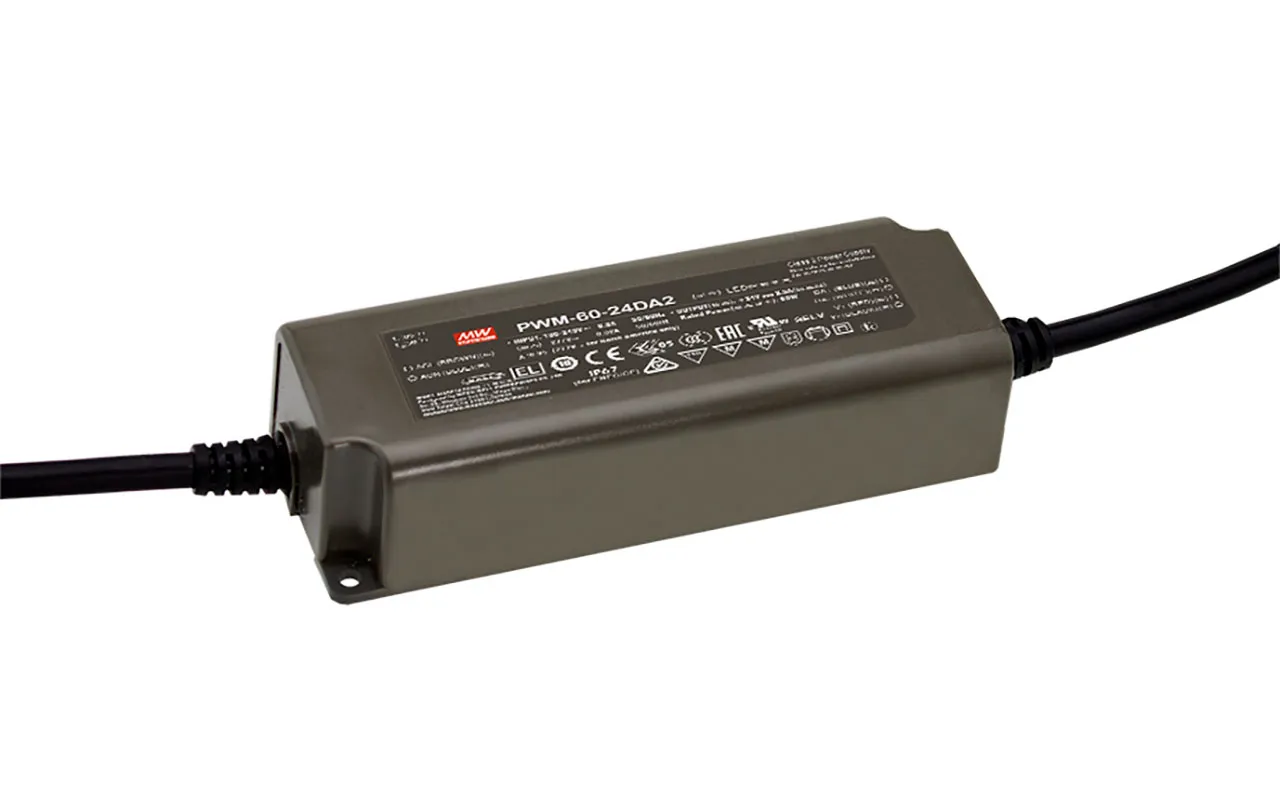 The PWM-60 series is a 60W AC/DC constant LED driver featuring the constant voltage mode with PWM style output, which is able to maintain the color temperature and the brightness homogeneity when driving all kinds of LED strips. The PWM-60 operates from 90-305VAC and offers different rated voltage ranging between 12V and 48V. Thanks to the efficiency up to 90%, with the fanless design, then entire series can operate with -40C to +85C case temperature under free air convection. The entire series is rated with IP67 ingress protection level and is suitable to work for dry, damp or wet locations. PWM-60 is equipped with dimming functions that varies the duty cycle of the output, providing great flexibility for LED strip applications.