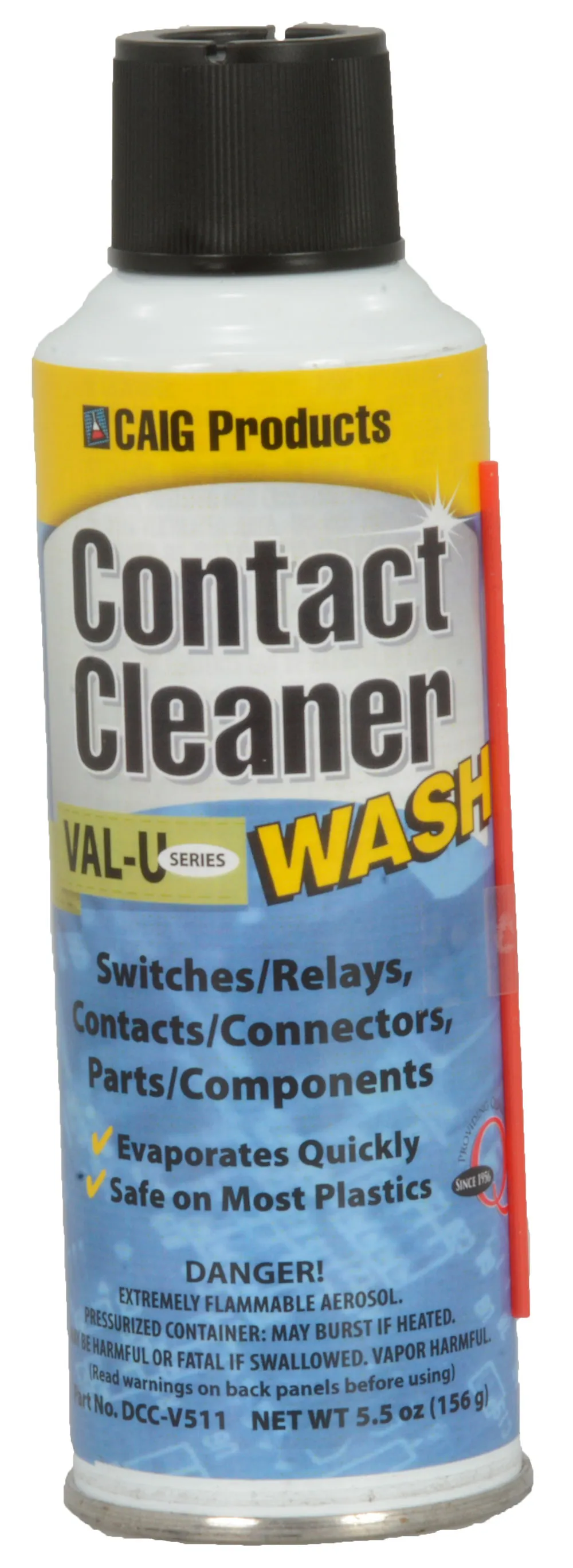 The Caig Laboratories DCC-V511 is a DeoxIT® Val-U series contact cleaner wash. Electrical contact cleaner is simply compressed air with a cleaning agent that evaporates, such as isopropyl alcohol. It is useful for removing dirt, oil, grease, or metallic oxides caused by corrosion and moisture from the surface of small pieces of electronic equipment, ignition systems, motors, electronic controls, relays, thermostats and other areas where you need the product to evaporate quickly and leave no residue and is safe for use on plastics.Features