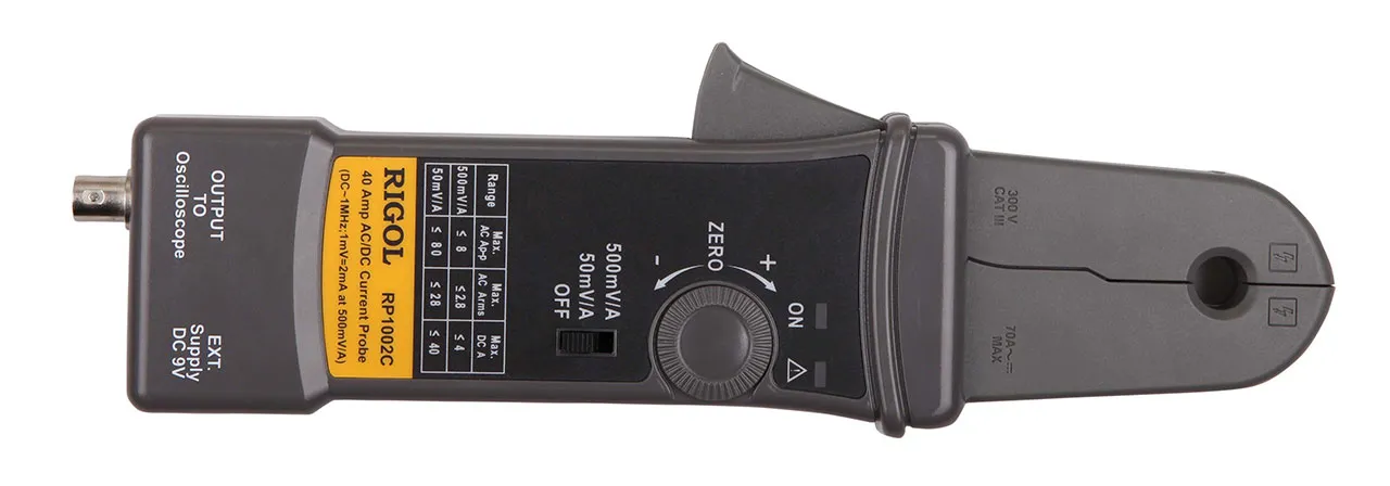 These characteristics apply to an adjusted RP1002C current probeinstalled on an oscilloscope of any brand. The oscilloscope must be warmed up for at least 20 minutes and be in an environment with the temperature at 10°C to 30°C and the humidity at 0-80%.