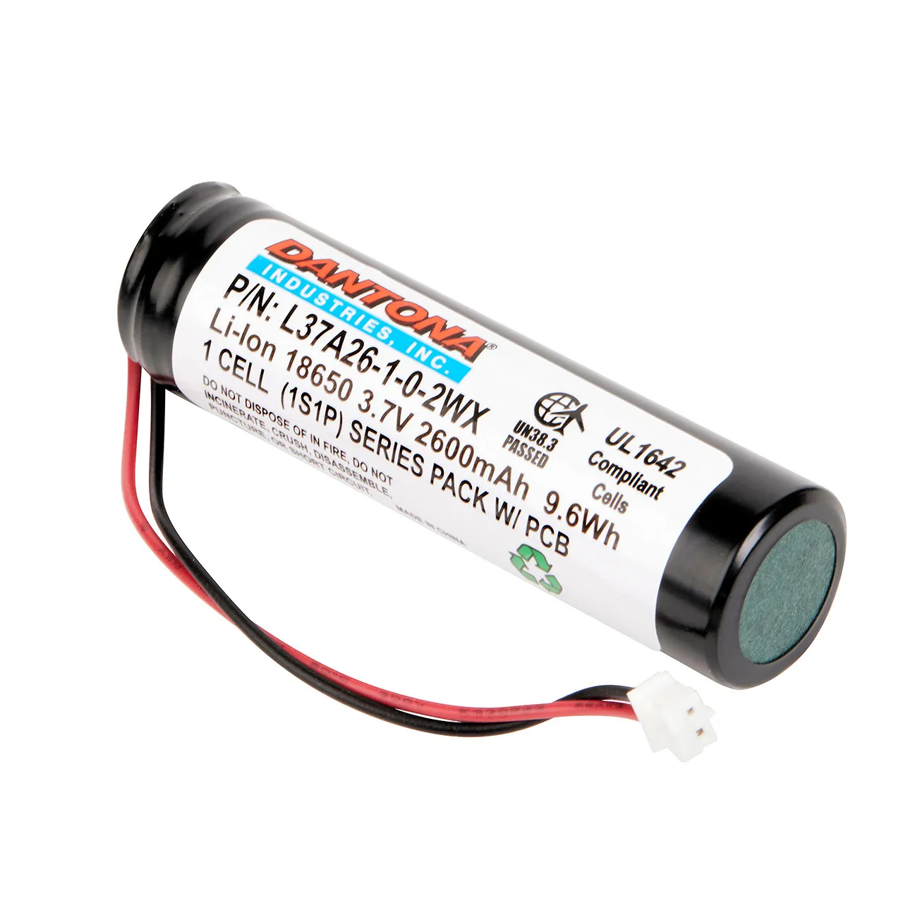 Dantona L37A26-1-0-2WX Lithium Ion Battery 3.7V 2600mAh