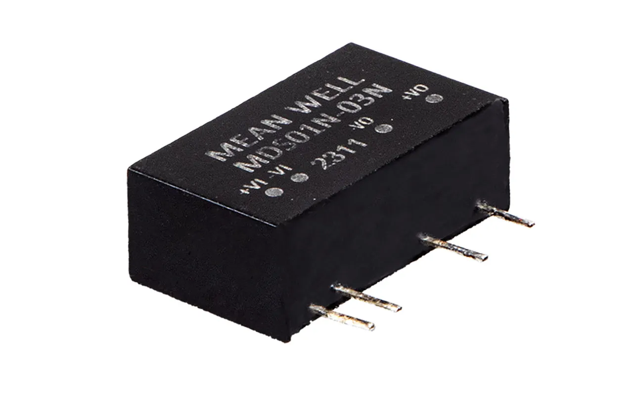 The MDS01-N and MDD01-N series are 1W isolated and unregulated module type medical grade DC-DC converter with SIP7 package. It features international standard pins, a high efficiency up to 84%, wide working temperature range of -40C to +95C, 6KV DC I/P-O/P high isolation voltage, short circuit protection, and more. The models account for different input voltage 5V/12V/24V ±10%, and various output voltage, 3.3V/5V/12V/15V for single output and ±5V/±12V/±15V for dual outputs, which are suitable for medical systems, ultra-low leakage current or industrial control, telecommunication field, distributed power architecture, and so on.