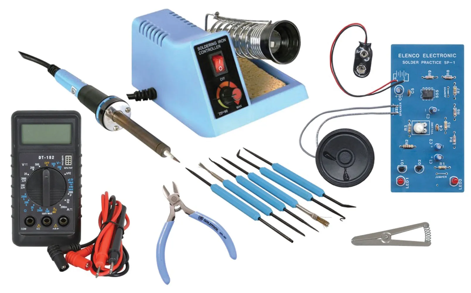 Learn how to solder with good technique and start up a proper work bench with a temperature-adjustable soldering station having a temperature range of 302° to 842°F. It will provide the correct temperature for a broad range of electronic components found in modern electronic equipment. Use the included digital multimeter to identify components and test connections when you've finished.Kit Includes: