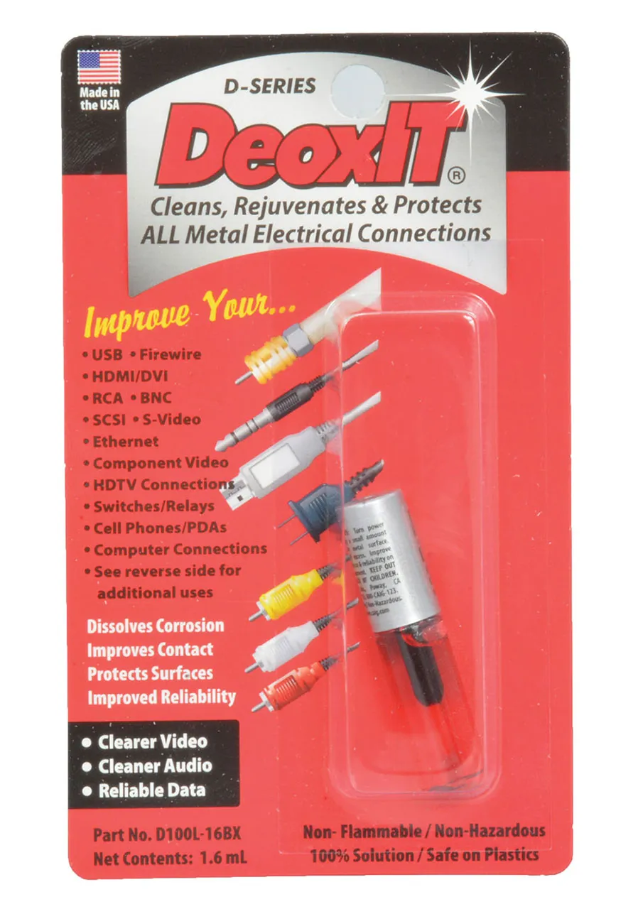 Contact cleaner, conditioner, enhancer, lubricant and protectant for PLATED metal surfaces. On oxidized surfaces, pre-treat with DeoxIT® contact cleaner.Features