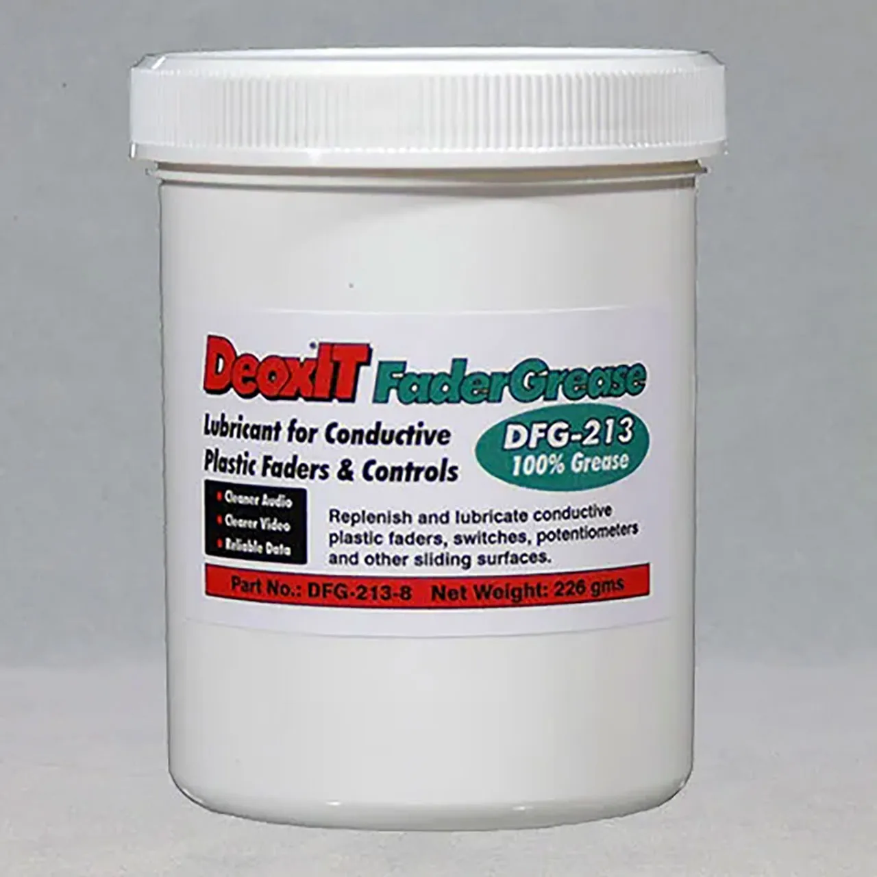 DeoxIT® FaderGrease is a precision lubricating grease and for moving contact surfaces (faders, switches, potentiometers and other mechanisms with sliding surfaces).It replenishes lubrication lost on surfaces that have been cleaned with solvents or other cleaning solutions.