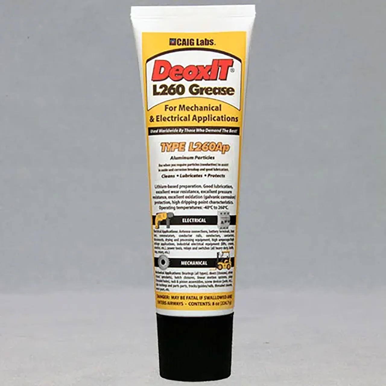 CAIG’s DeoxIT® L260 Grease is a lithium grease with unique additives to enable it to adhere and stay on the surfaces it is applied to. It has a tenacity to stick to surfaces. Additional additives allow it to displace moisture, prevent oxidation and corrosion and provides superior lubrication and protection. DeoxIT® L260 Grease’s unique properties allow it not only to be used on mechanical devices - also electrical devices and equipment; such as high powered switches, disconnects, connectors, relays and exposed connections in severe environments.