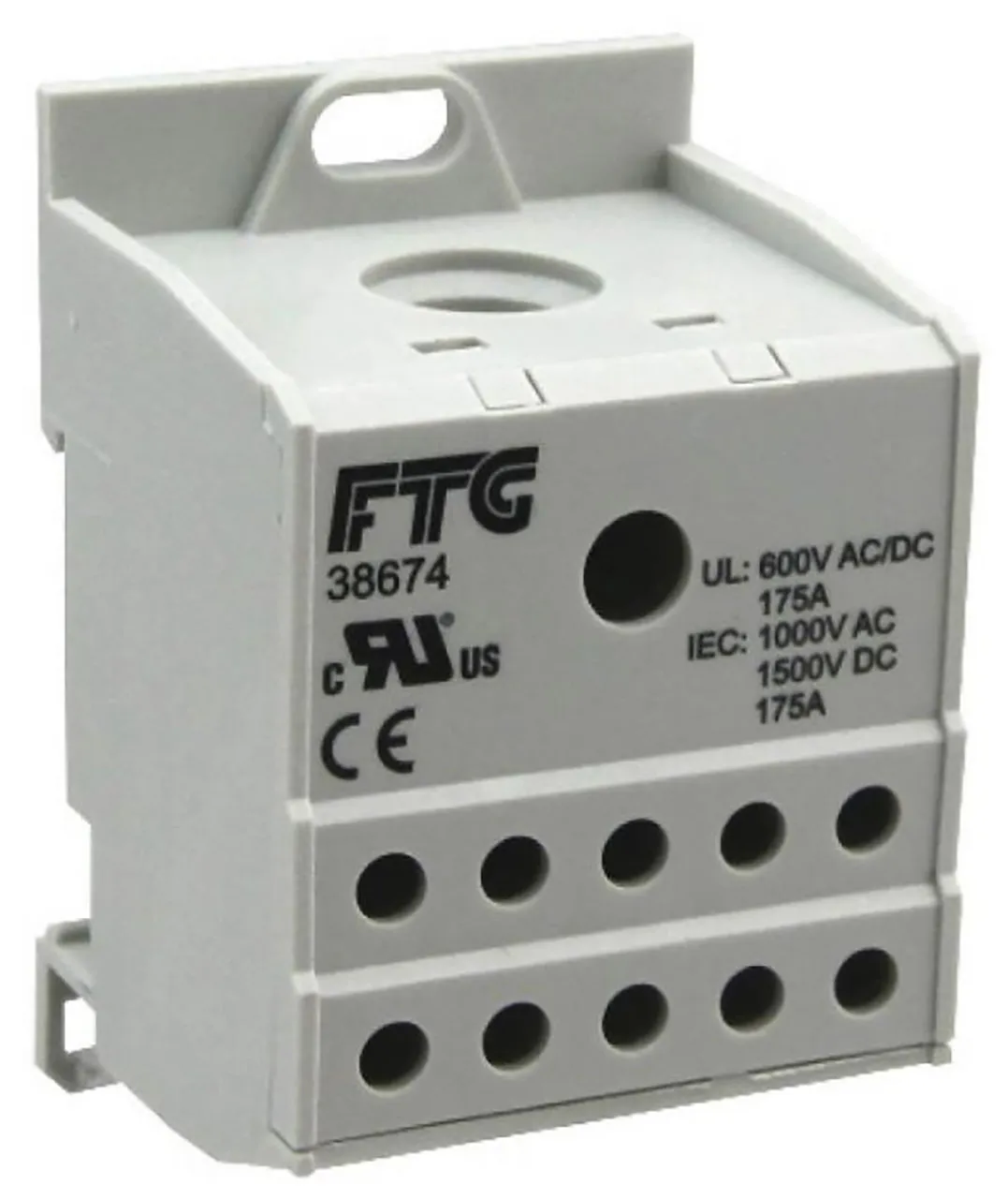 DIN Distribution Block 1 Pole Aluminum 175A Input 1 x 6-2/0AWG Output 10 x 14-4AWG