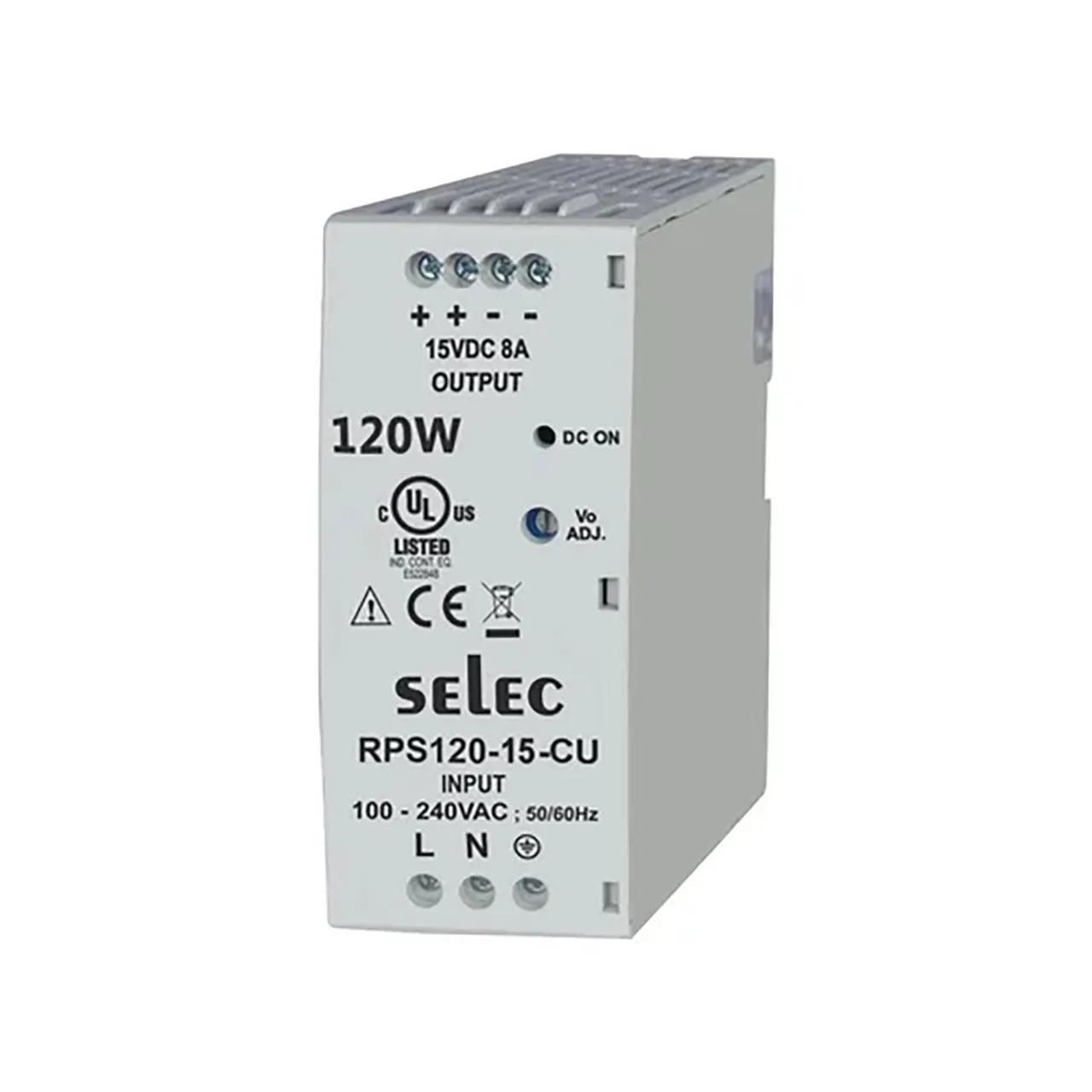 DIN Rail Mounted Power Supply in Plastic Housing 120W, 15V/8A, UL Listed