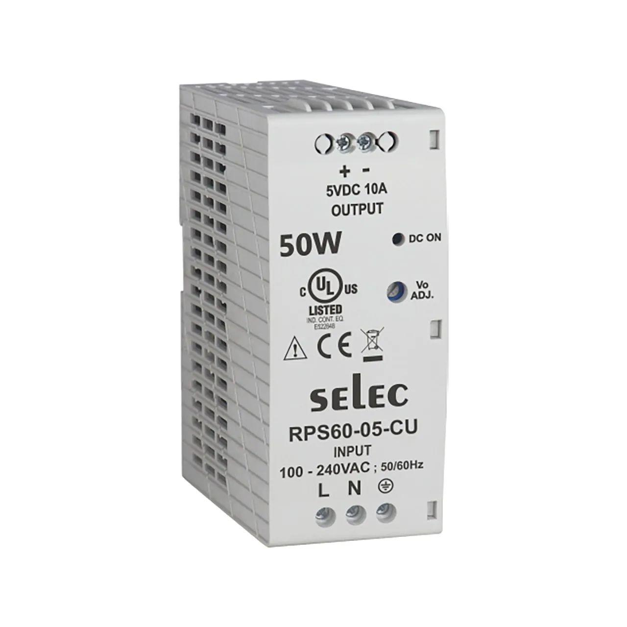 DIN Rail Mounted Power Supply in Plastic Housing 50W, 5V/10A, UL Listed