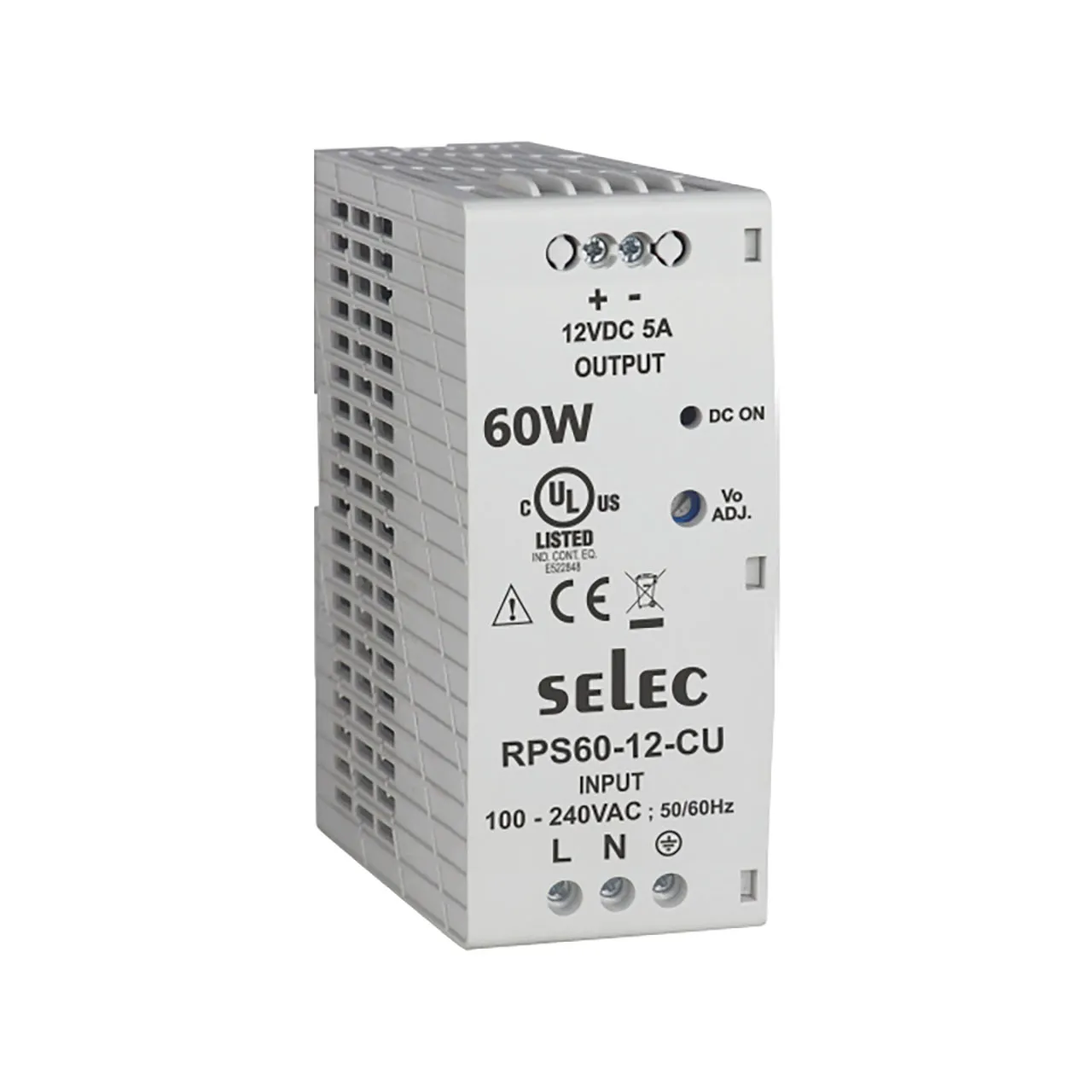 DIN Rail Mounted Power Supply in Plastic Housing 60W, 12V/5A, UL Listed