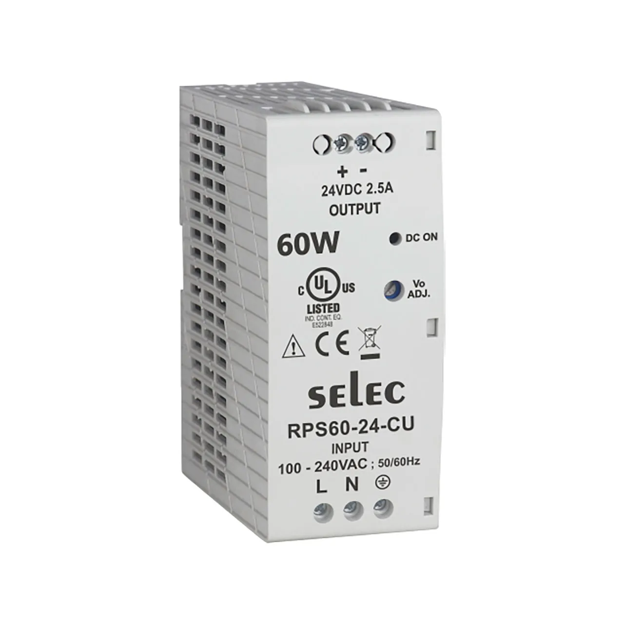 DIN Rail Mounted Power Supply in Plastic Housing 60W, 24V/2.5A, UL Listed