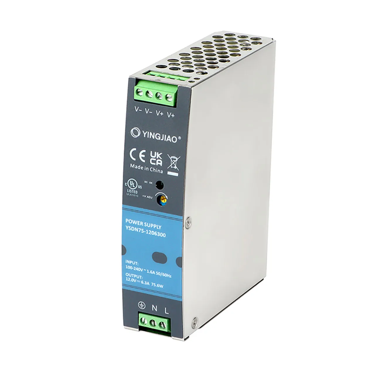 DIN Rail Power Supply 12 VDC 6.3A 75.6W 90VAC to 264VAC Input