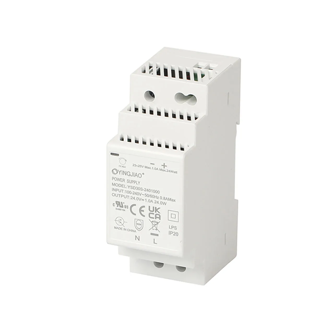 Yingjiao's step shape power family are designed with ultra-slim plastic housing and for a full range AC input from 90VAC to 264VAC. The series are isolation Class II level achieving high efficiency and low no-load power consumption. They also provide adjustable DC output voltage. With its good performance, they can be used building automation, household, and industrial control systems and more.