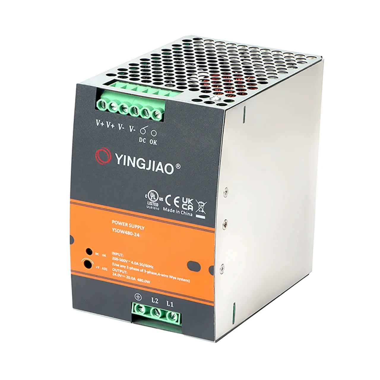Yingjiao's YSTD series are designed with metal housing for single- and two-phase systems with a wide range from 180 VAC to 550 VAC. The series offers DC Ok relay contact, built-in constant current limiting circuit and active PFC function, and it operates in a wide temperature range. They are suitable for industrial-related applications such as industrial control, semiconductor fabrication equipment, and factory automation.