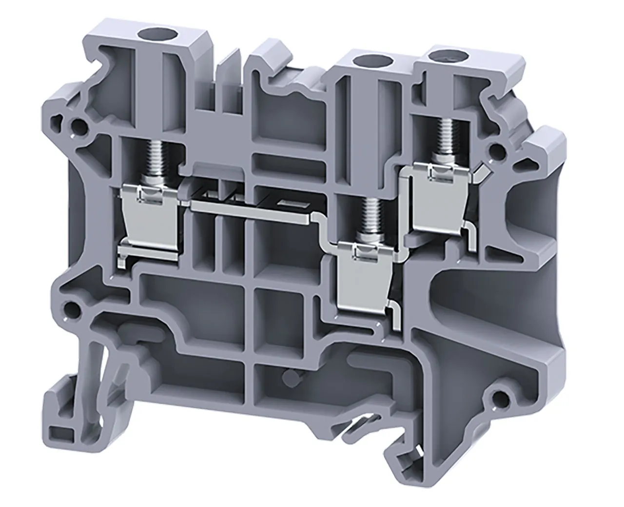 DIN Terminal Block Screw 3 Conn 30A 600V 24-10AWG 6mm Black