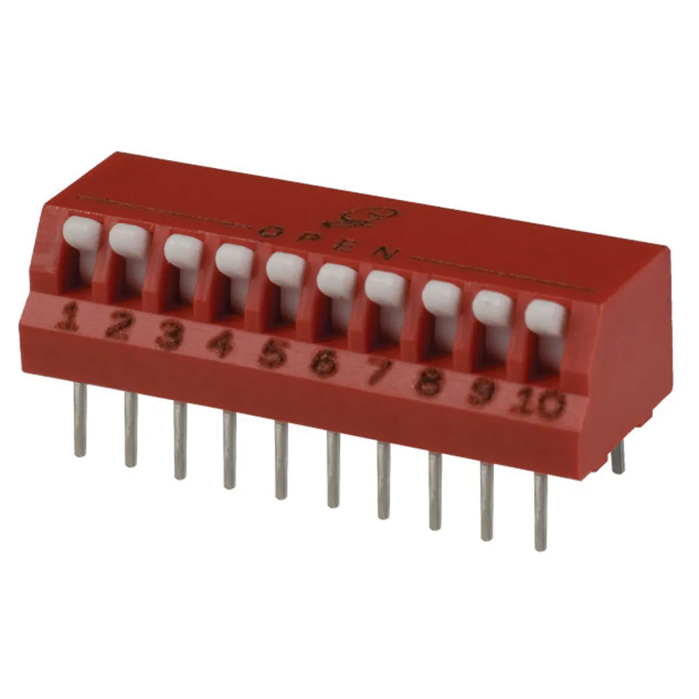Switch DIP ON OFF Single Pole Single Throw (SPST) 10 Piano 0.15A 30VDC PC Pins 2000Cycles/Switch Cycles 2.54 mm Thru-Hole