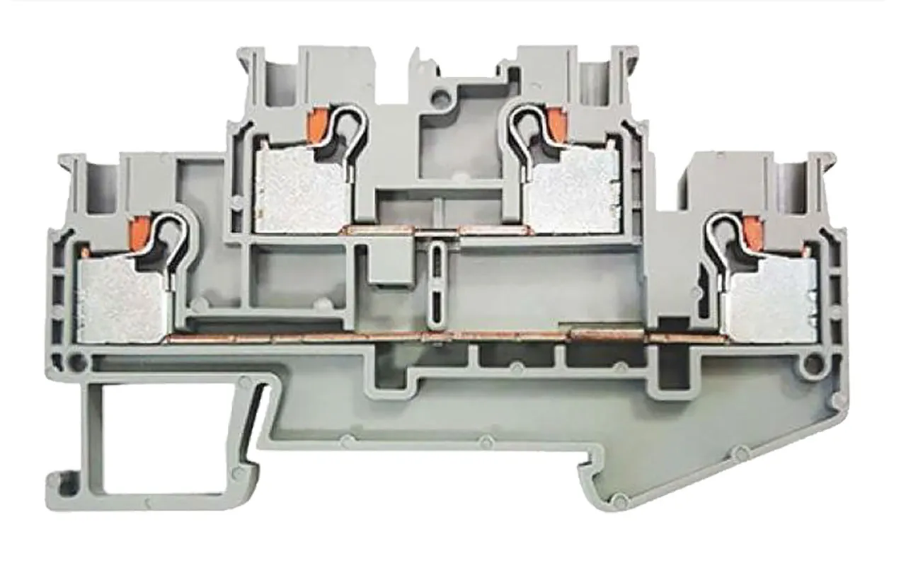 Dual Layer DIN Rail Terminal Block 4C 2.5mm² Max Wire Push-In Gray