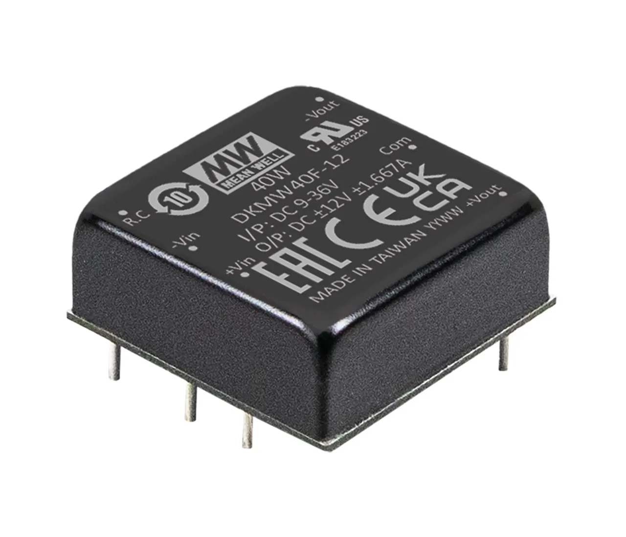 SKMW40 and DKMW40 series are 40W isolated and regulated module type DC-DC converter with DIP 1"x1" package. It features international standard pins, a high efficiency up to 91%, wide working temperature range -40 to +80C, 2KV I/P-O/P isolation voltage, compliance to BS EN/EN55032 radiated Class A/B with additional components, continuous-mode short circuit, overload, input under voltage protection, etc. The models account for different input voltage 9-36V and 18-75V 4:1 ultrawide input range, and various output voltage, 3.3V/5V/12V/15V/24V for single output and ±12V/±15V for dual outputs, which are suitable for all kinds of systems such as industrial control, telecommunication field, distributed power architecture, and more.