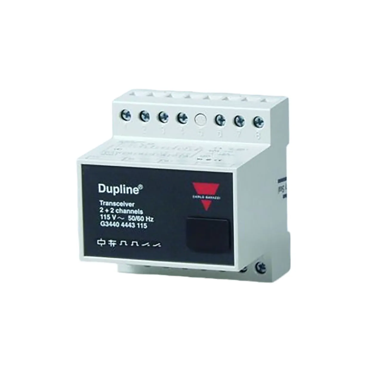Dupline® transceiver with 2 inputs for AC/DC voltages and 2 SPST relay outputs.
