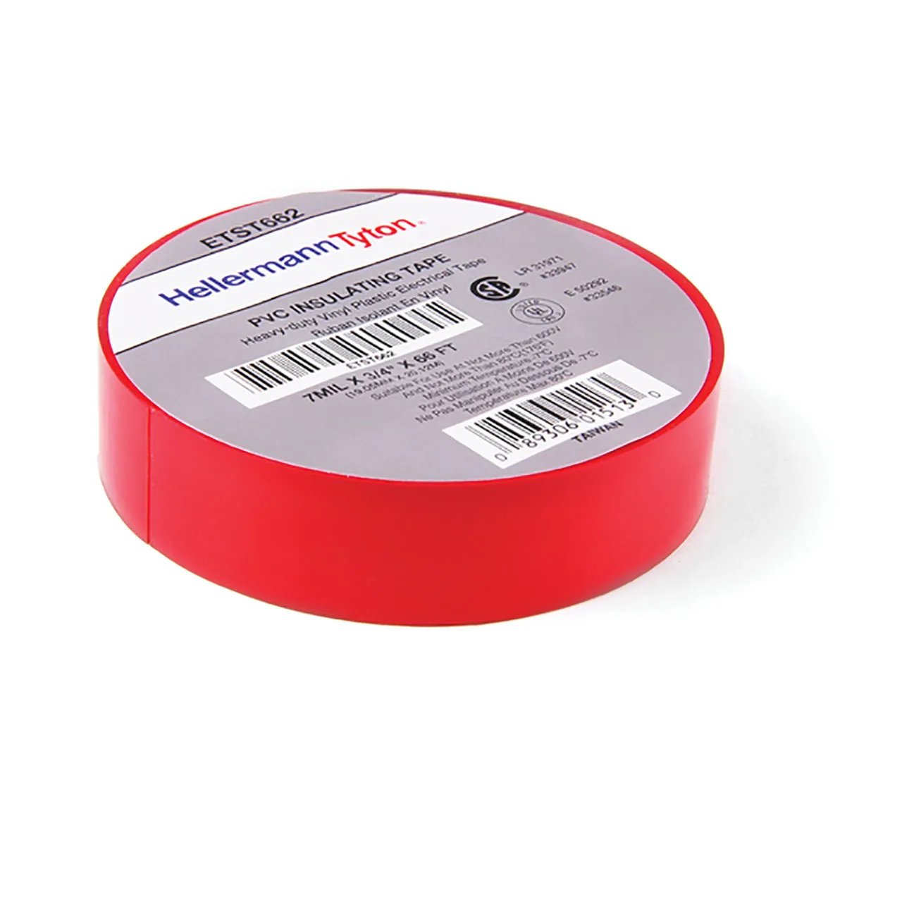 Electrical Tape, 0.75" x 66' Roll, 7.0 mil Thick, PVC, Red, 10 rolls per Package
