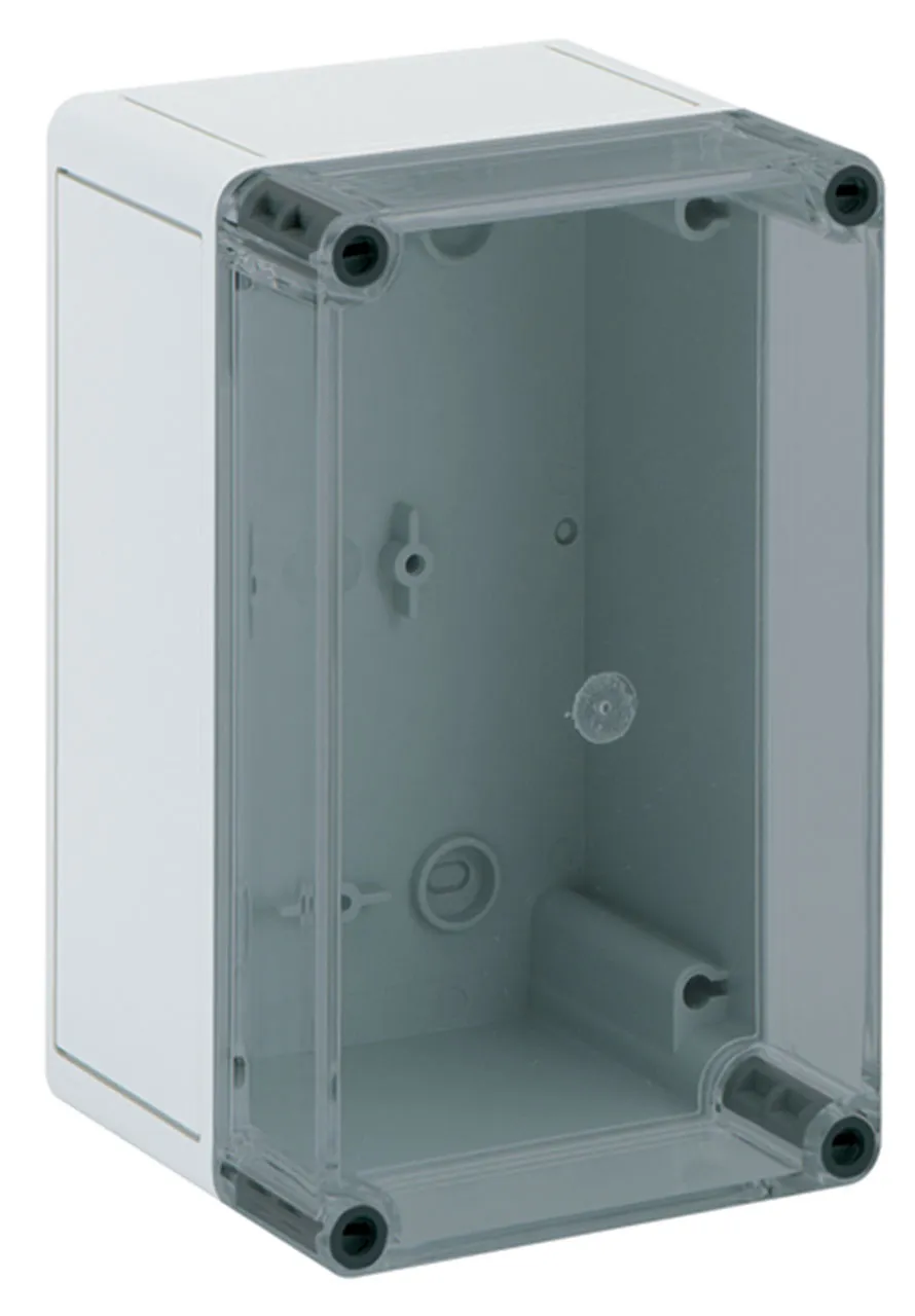 Enclosure, Polystyrene, Gray with tinted transparent cover, Smooth Sides.