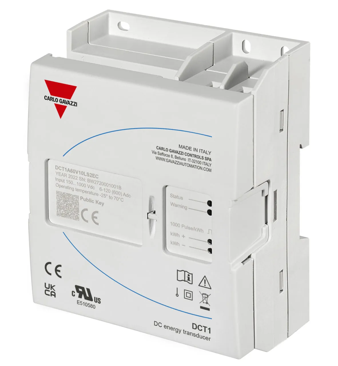 Energy transducer for DC systems up to 1000V DC and current up to 600A. Tamper proof cover DIN rail mount and Modbuse RTU.