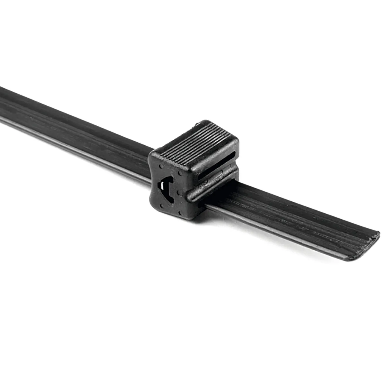 Extended Length Ties provide a high tensile strength strapping system consisting of a continuous strap and separate locking head making it suitable for any bundle diameter, eliminating waste. The smooth strap and specially designed heads with stainless steel pawls provide a strong grip on cables and wires without damage during vibration or in extreme environments. Spacers are available for dual bundle applications.