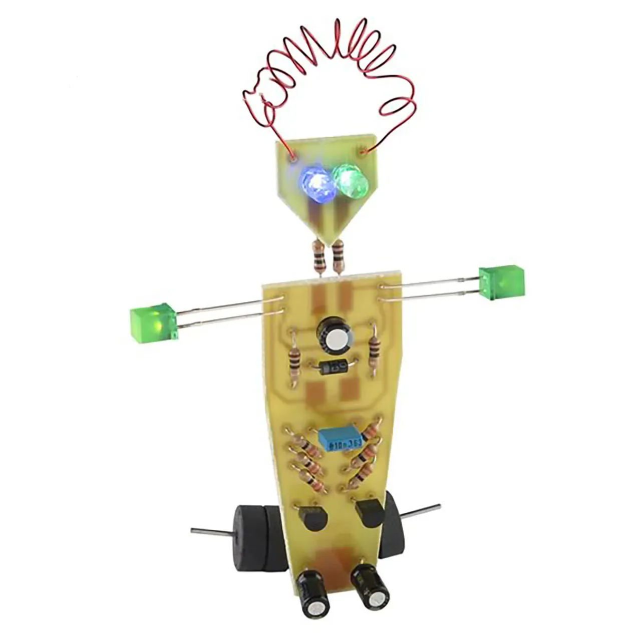 What a fun kit to practice your solder techniques on. Plus, upon completing this kit, you will have created "Flash" The Robot. This kit features Flash's eyes that use two very bright and colorful, flashing rainbow LEDs that light up in colors of red, green, blue, violet, and yellow. The hands light up in green. Another feature that's really cool about this kit, is that there are no worries about finding batteries to keep Flash fueled up because your robot kit is powered by your computers USB port! This kit is perfect for beginners learning to solder and stands 3.2" X 1". Complete with all parts, PC board. Requires soldering. Skill Level 1.